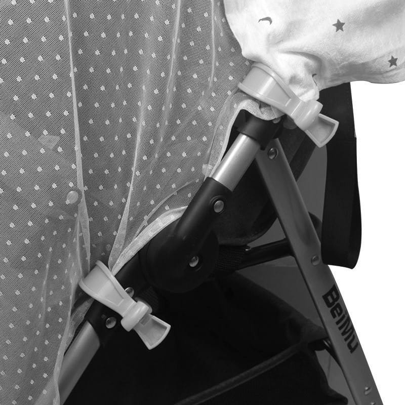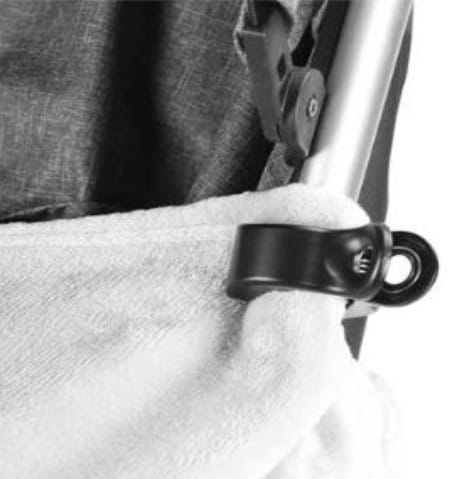 Klamerka przytwierdza te przedmioty do ramy wózka, dzięki czemu nie ma ryzyka ich zabrudzenia lub zgubienia w czasie spaceru.