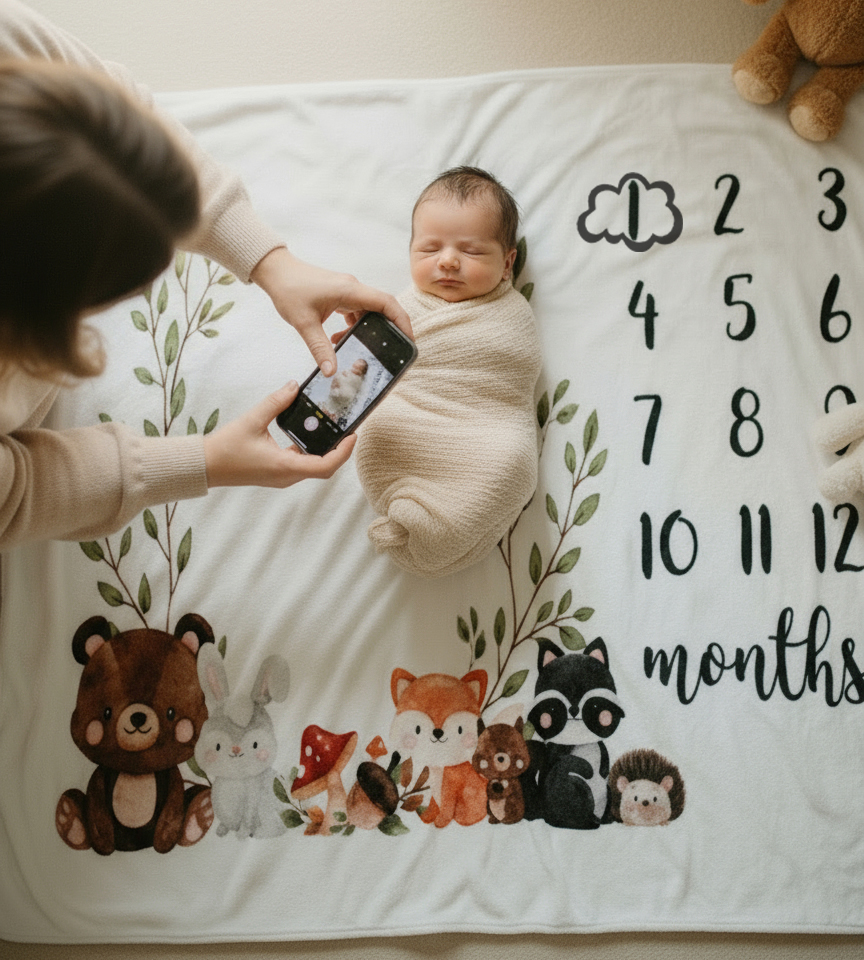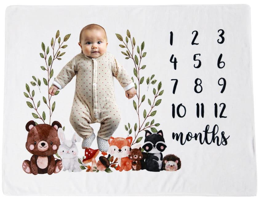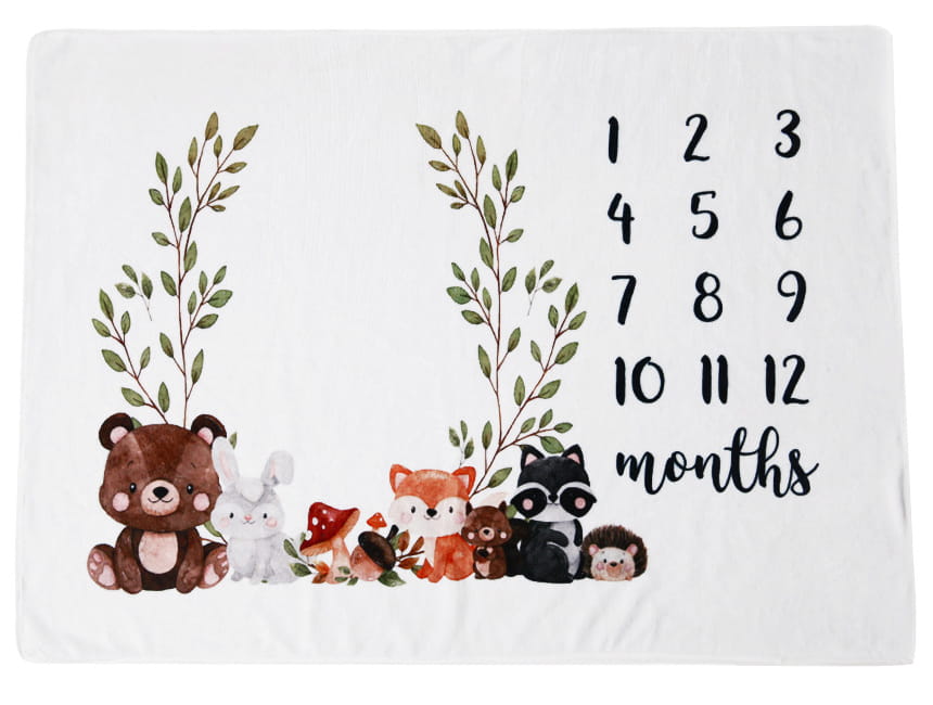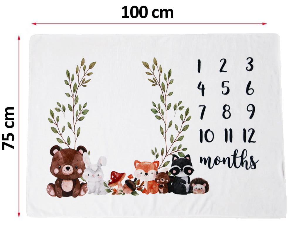 Miękki kocyk do zdjęć z możliwością zaznaczenia aktualnego wieku dziecka jest świetnym gadżetem ułatwiającym wykonanie zestawu pamiątkowych fotografii rosnącego maluszka.