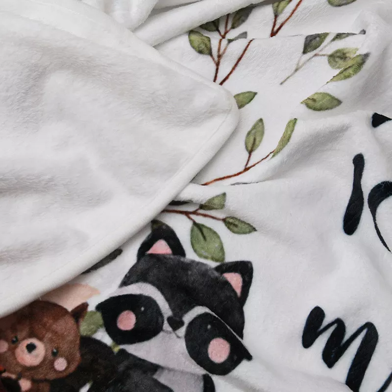 Foto kocyk ma piękny i trwały nadruk, a do tego jest mięciutki i przyjemny w dotyku. Może zatem posłużyć w dwóch rolach: jako mata do zdjęć oraz jako okrycie, przytulanka dla dziecka.