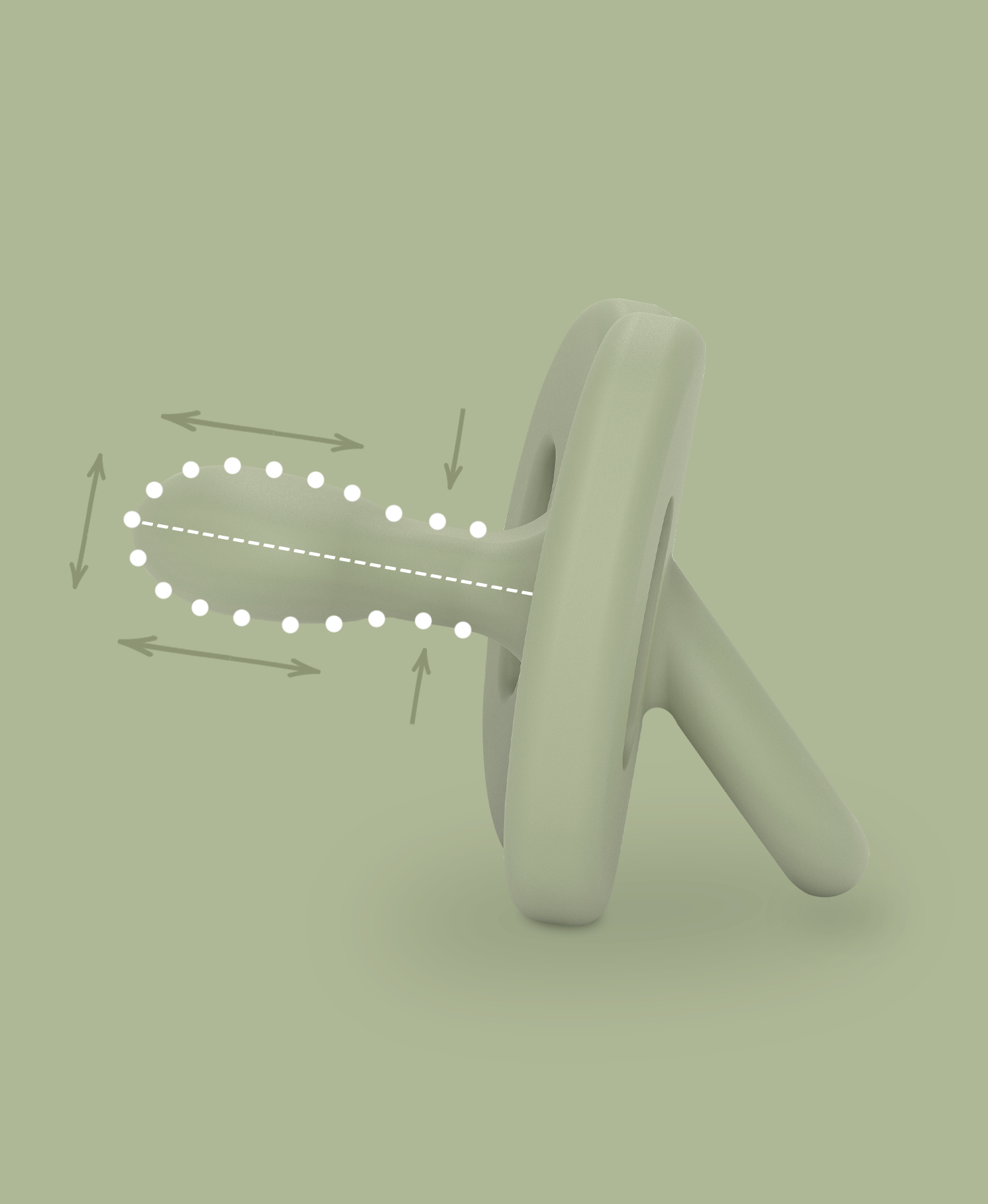 Zaprojektowane z poszanowaniem naturalnego układu jamy ustnej noworodka, aby zapewniał jak najbardziej naturalne uczucie podczas ssania. Dzięki płaskiej budowie smoczka, dziecko niemal nie odczuwa jego obecności.