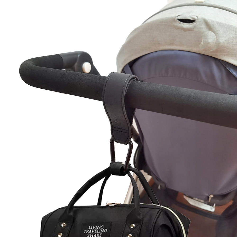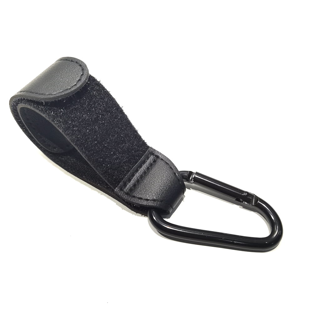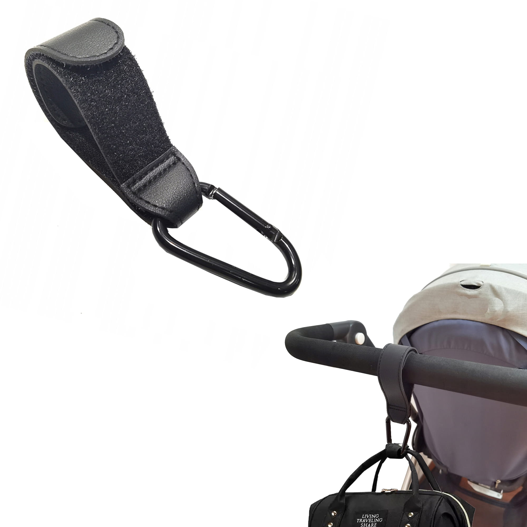 -Wytrzymały i estetyczny: Trwały pasek ze sztucznej skóry i aluminiowy karabińczyk zapewniają wytrzymałość uchwytu, a uniwersalna kolorystyka i estetyczne wykończenie sprawia, że pasuje on do każdego typu wózka
